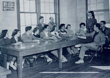 (left to right) Rebekah Huffman – 7th grade, Jean Frakes – 8th grade, Tony Waller and Doris Medlin – Freshman reps, Carl Blanchard and Shirley Morton – Sophomore reps., Jerry Christian and Helen Proctor – Junior reps., Linda Poole – Secretary, Patsey Caldwell, President, Sonny Lovelace – Vice President, and James Weaver – Senior rep.