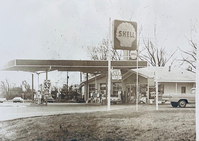 #tbt On Labor Day in 1968, Cecil Kerley opened his new Shell station at the intersection of what was then Fair Boulevard and Highway U. Later, the station was purchased and run for many years by Joe Braswell, who even added a car wash on the property. It closed in the late 1990s or early 2000s, and it had been closed for awhile when the 2006 tornado passed directly through that area of town, doing catastrophic damage to the building and property. After a year or so, the building and car wash were razed and the property sat vacant for a number of years. Now it is home to what was called The Store, and now called White Oak Station.