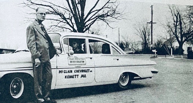#tbt In honor of this weekend’s Bootheel Antique Car Klub show, we feature a classic Chevrolet donated by McClain Chevrolet in Kennett to the 1960 Wardell High School Drivers’ Education class. Shown here are Mr. Potts, the instructor; Larry Joyner, Driver; Back seat: Barbara Adams, Bobbie Latham, and Arlis Baynes.