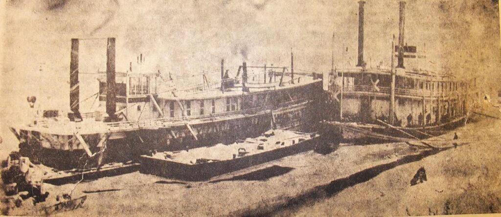 #tbt This riverfront scene was typical of long past days in Caruthersville when riverboats tied up here at frequent intervals. This photo of two boats was taken during the “hard” winter of 1917-1918, which was historically a very severe winter.. The craft at the left is a towboat owned and operated by the Mengel Box Factory, which was just across the river at Dyersburg for many years, while the one at the right is the Oleander, a light tender boat on which Mr. Winfield Bader, the owner of this photo, was employed. Snow covered the river bank and the flat-bottomed shown in the photo.