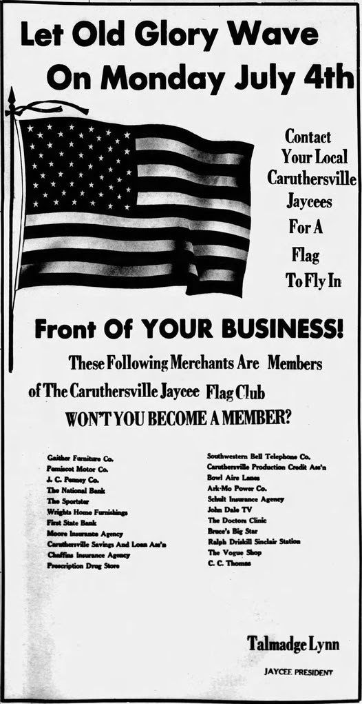 #tbt Happy Fourth of July! From the June 30, 1966 issue of The Democrat-Argus comes this advertisement from the Jaycees organization, where Talmadge Lynn was the president. (Note the old merchants in the city at the bottom of the ad.)