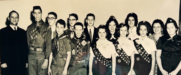 #tbt Dr. Paul Currie represents the First Presbyterian Church as they honor Boy Scouts and Girl Scouts during Scouting Week in the early 1960s.