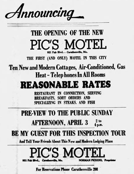 #tbt Pic’s Motel was announced in the April 1, 1960 Democrat-Argus, at a time when there was remarkable growth in that area of the town with the new by-pass, called Fair Boulevard at that time, now Truman Boulevard.