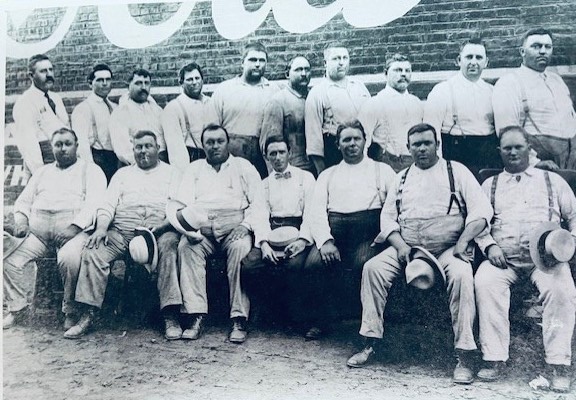 In 1905, this photo was made by an itinerant photographer who was amazed to see so many “big men” in so small a town.