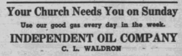 #tbt The “Independant” Oil Company was located at the corner of 15th Street and Ward Avenue. The first mention of it in the newspapers was in 1936, when someone drove into a gas pump and ignited a small fire when someone lit a match nearby. No one was injured and there was only $250 damage. Over the years, C. L. Waldron operated the popular station, with the slogan “Gas for Less”, even recommending that residents go to church on Sunday in an advertisement from 1938. The station closed in the 1970s or 1980s and it later was renovated for use as a restaurant. “Don’s Place” was in the building for a number of years and it is now the home of “Mama’s Boys” restaurant.
