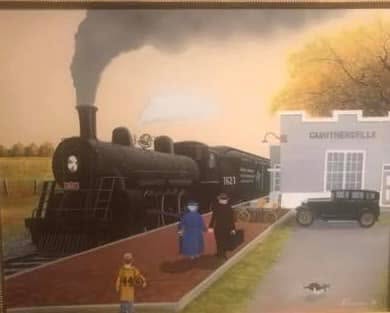 Artist Edsel Dawson of Hayti painted the Cauthersville Depot as it looked when trains were still running. Dawson owned and operated Dawson Oil Company for many years and worked at Kelley Electric.