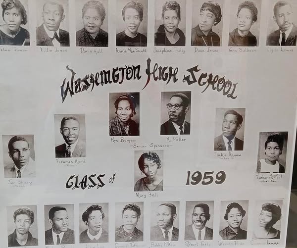 #tbt The Class of 1959 from Washington High School: (Top row – left to right) Velma Trainor, Willie Jones, Doris Hall, Annie May Scott, Josephine Timothy, Dixie Jones, Vera Sullivan, and Clyde Lewis