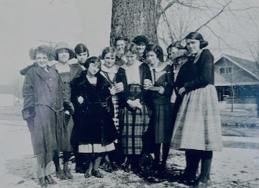 Shown here are Edith Wilks, Sadie Williams, Hester Hawkins, Louise Duffy, Genevieve Bloker, Grace Amburgey, Class Sponsor Julia Hawkins, Mary A. Scott, Helen Powell, Gladys Siler, Kathryn Edgerton, Frances Aquino. Helen Dillman was also in this class, but she took the picture.